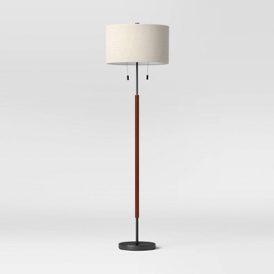 Threshold floor lamp with cut off base in black/brown metal and wood