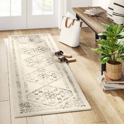 Threshold washable distressed Persian accent rug in cream